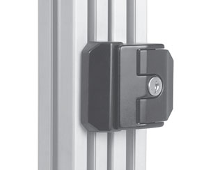 金屬鎖具結(jié)構(gòu)緊湊,在關(guān)閉位置有自動上鎖機(jī)制。稍用力就能使它關(guān)閉。折疊把手結(jié)構(gòu)符合工效學(xué)原理,稍拉就可將插銷拉開框架。適用于左開門或右開門。